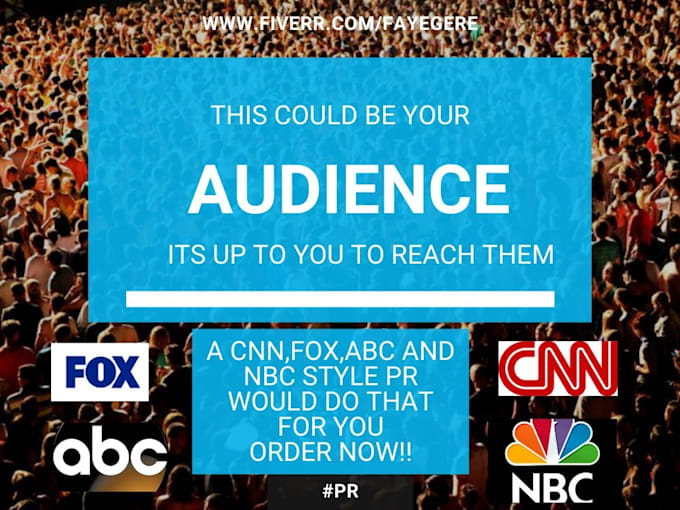 CNN,FOX,ABC and NBC public relation gurus and writers are very skilled and you can only find them writing for top medias.You can't find them on FIVERR because their service charged runs into thousands of dollars. Well you're in luck and don't have to pay thousands of dollars to get one done.I have studied and written over 23 CNN,FOX,ABC and NBC press release articles.