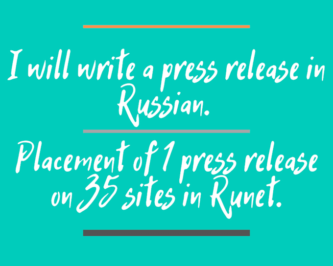 I will write a press release in Russian. Placement of 1 press release on 35 sites in Runet.
